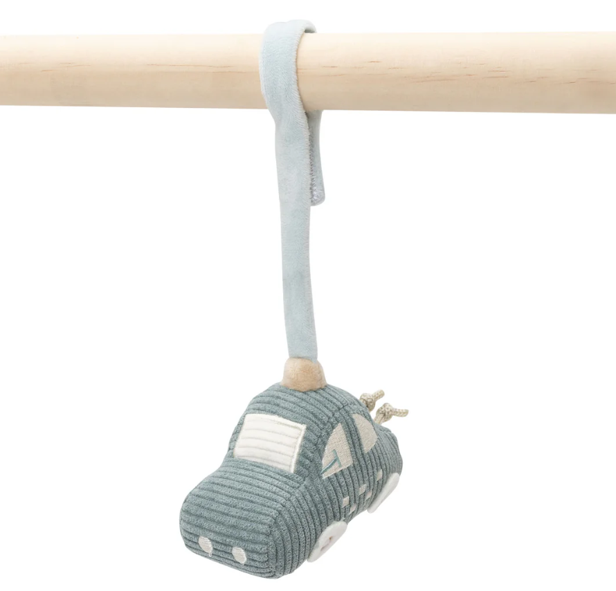 Selles On the Go kollektsiooni komplektis on võtmeke ja kaks armsat autot – kõik valmistatud pehmetest materjalidest ja teevad erinevat häälty. Krõpskinnitused teevad nende riputamise igale mängukaarele või miks ka mitte turvahälli või vankri külge lihtsaks ning oliivirohelised paelad lisavad mängulist ilmet.