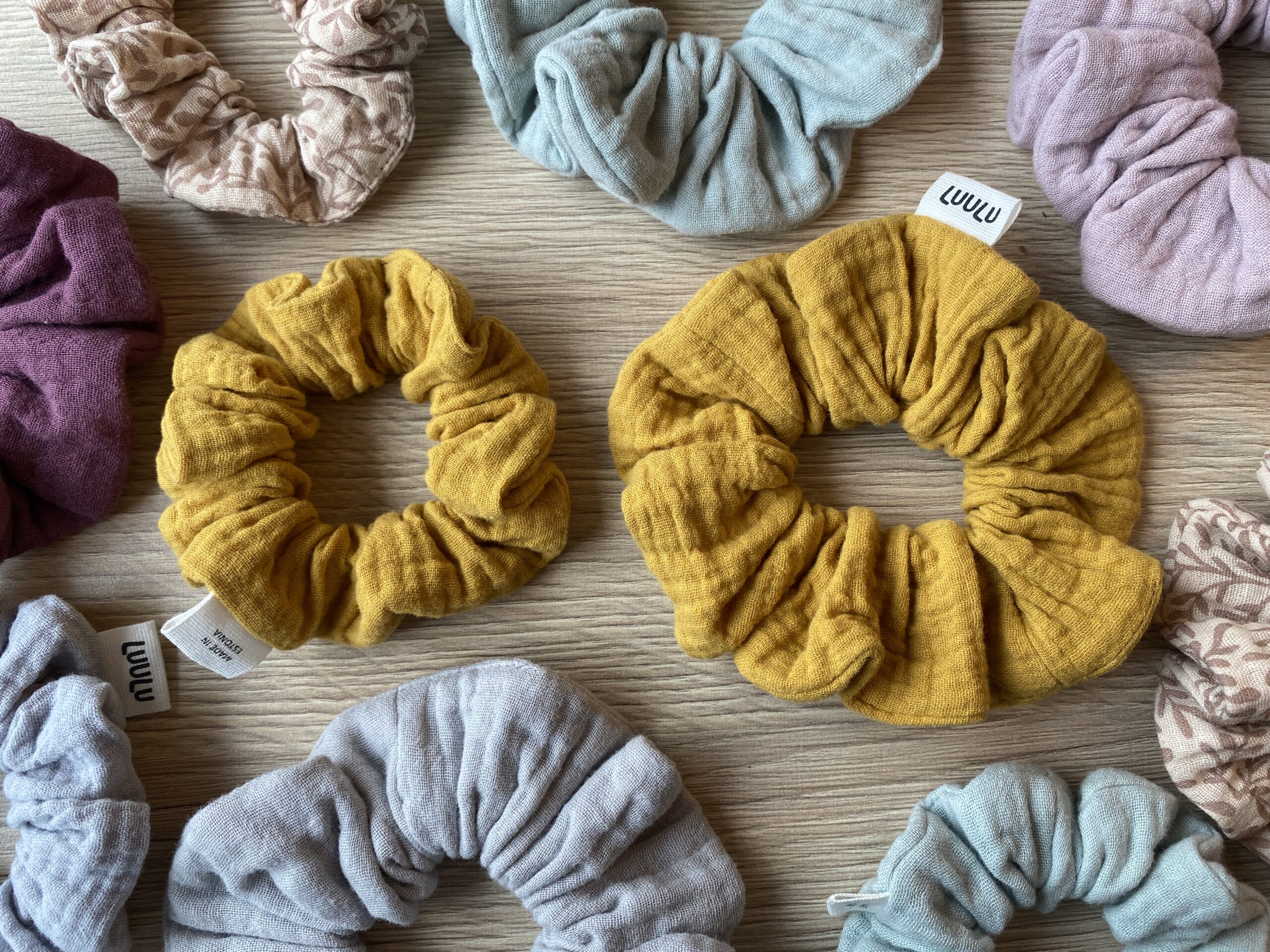 Kuna scrunchied on valmistatud kangajääkidest, leiab enamuste scruncie toonidega samu ka teiste Luulu toodete hulgast, ning sobib seetõttu komplektina praktiliseks ja hästi läbimõeldud katsikukingituseks värsketele emadele ning uhiuutele beebidele.