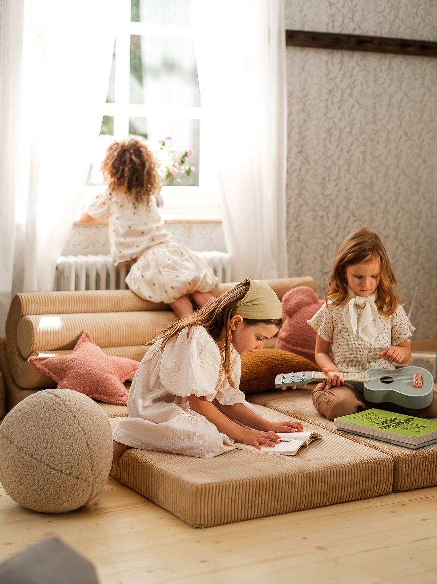 Wigiwama Flipster on mitmekülgne laste tugitool, mis sobib nii istumiseks kui ka pidžaamapidudeks. Suurem ja funktsionaalsem disain võimaldab sellel hõlpsasti muutuda lamamistooliks, lapse voodiks või mängulinnuseks. Lastele läbimõeldult loodud – reguleeritav seljatugi ja pehme disain pakuvad mugavust ja paindlikkust, muutes selle praktiliseks ja stiilseks lisandiks igasse lastetuppa või mängutuppa.